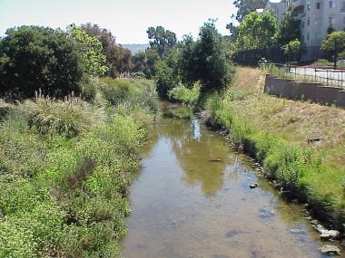 The path along the south bank here was torn up in 2000 by a sewer replacement project. Now the path and the creek are both slated for improvements.