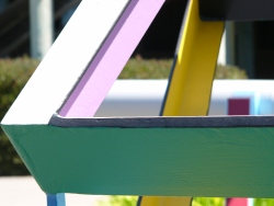 Joseph Slusky's 1982 sculpture "Calliope" just got restored and repainted. The new color scheme is simpler and brighter. Here are some photos of the old paint job.