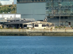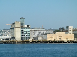 On the Oyster Point Ferry ride a few days ago I noticed that the route went just offshore of Hunters Point Naval Shipyard. The evening run had a bad sun angle so I went back this morning to get better pix. Then from the ferry I biked south past SFO and then west and north, around San Bruno Mountain and back to downtown SF. Whew!
