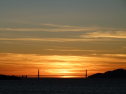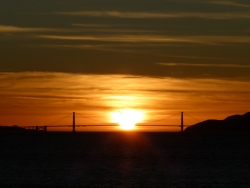King Tide at a spot on Bay Farm Island where the water level was two feet above the road. Also a Golden Gate sunset with bonus Moon, Venus, and Saturn.