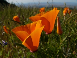 I rode up Mount Diablo, not to the top, only to the 3000 foot level. Then around the side on Deer Flat Road and down Mitchell Canyon. Lots of wildflowers blooming between 2000' and 3000'. Lower down, the show is over.